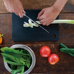 毎日のように使うまな板ですが、いまお使いのまな板に満足していますか? 木のまな板は、弾力性があって刃あたりが良く、食材を切るのも快適ですが、雑菌の繁殖やカビが生えないように気を遣います。 一方、お手入れが簡単なプラスチックのまな板は、刃あたりが硬く、根菜などを切る時にあまり心地よくないのが正直なところ。 「快適な切り心地の木製」と「お手入れ簡単で清潔なプラスチック製」の‘いいとこどり’のまな板が、この合成ゴムのカッティングボードです。 長年プロも愛用してきた、合成ゴム製のまな板を、家庭でより使いやすい薄さに。色は食材の色移りがしにくいスタイリッシュなブラックで、どんな台所にも馴染むのも嬉しいポイントです。