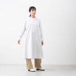 兵庫県・西脇市のテキスタイルメーカー島田製織さんが仕立てた「HaTaKaKe(ハタカケ)」 の “播州織” ワンピース。 ドレスシャツ向けのコットンの高級糸を使い、光沢のあるなめらかな肌触り。 リネンが混ざっていることで、通気性と軽やかさもプラスされて、気兼ねなく着られる親しみやすさもあります。 細い糸で高密度で織られているから、薄手で軽やかさがありながら透けにくいのも特徴。 袖を通すだけできちんと感のあるシャツワンピースは、春夏のアウターとしても使えます。