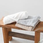 綿よりも吸水力に優れ、柔らかな肌触りの良い、天然由来のレーヨンパイルタオル。 肌にのせるだけで、スーッと水分を吸って、あっという間に体や髪を拭きあげます。 効率よく水分を吸収するから、通常のバスタオルよりも小さめで、体も髪もコレ1枚で拭けるサイズにしました。 綿と比べて、毛羽が出にくく、洗濯する程にふんわりした感触になります。 乾きも速いから毎日洗えて清潔。使い勝手の良い小さめタオルはギフトにもおすすめです。