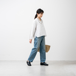 ボタンホールゴムで自由にウエストを調整できるので、ハイライズ特有の締めつけ感がなく、腰が浮かない美しいウエストラインになります。 ボーイズデニムの適度なゆとりもあり、オールシーズン定番として愛用頂けるcaqu(サキュウ)のデニムです。カラーは『rebirth』と『3yearsused』の2色展開。