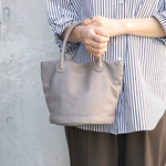 余分な装飾をそぎ落としたデザインと、丸みを帯びたコロンとした柔らかいシルエット、袋縫いでふっくら仕上げた口元の立体感が上質な素材感を引き立て、シンプルながらも存在感のあるトートバッグです。