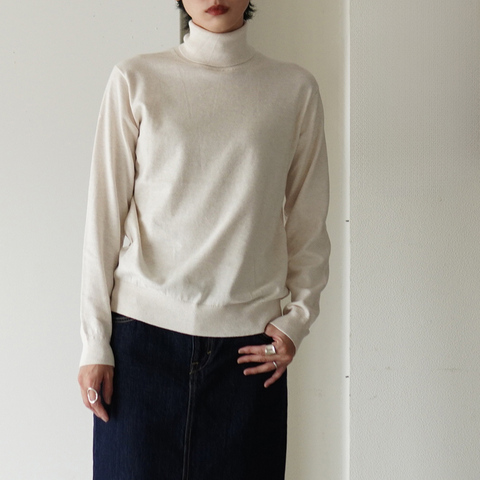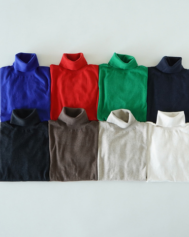 起毛させた糸でふんわりと編み上げた柔らかなムーコットンタートル。カシミアのような滑らかな肌当たりとソフトな着心地が魅力です。