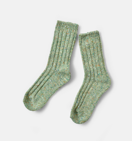 肉厚でもっちりとした履き心地。カラフルなネップがミックスされたナチュラルな雰囲気が特徴です。ウールやシルクなどがミックスされた素材なので、あたたかく履いていただけます。