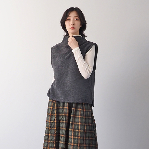 毎年秋冬定番で大人気のトラベルウールプレミアコート(品番:650240BD)と同じ素材を使用したトラベルウールプレミアハイネックベストです。すっきりとしたシルエットと、ボトルのような口になったハイネックが可愛く、首元もあったか。