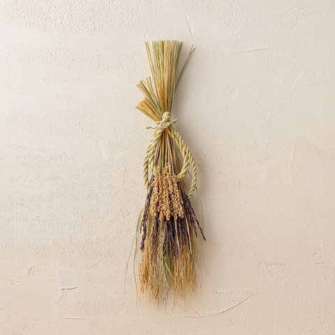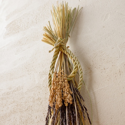 工房ストロー|しめ飾り/宝珠赤米白穂
