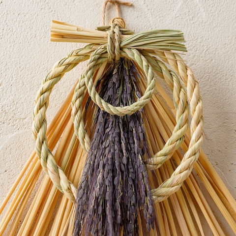 工房ストロー|しめ飾り/宝珠赤米白穂