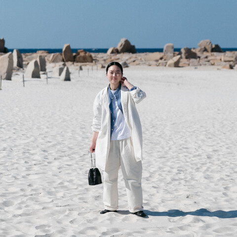 生地が薄いため持ち運びがしやすく、くしゃくしゃと折り畳める使い勝手の良さはもちろん、衿付きはしなやかさの中にもすこしきちんとした印象があり大人っぽく決まります。