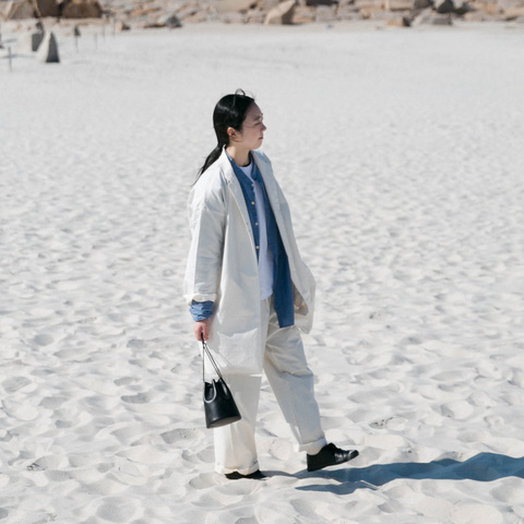 最低限の必要なステッチのみで縫製しており、1枚の生地を羽織ったような仕上がりにしています。