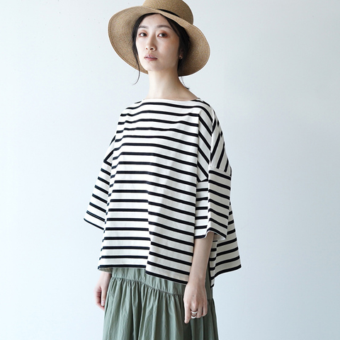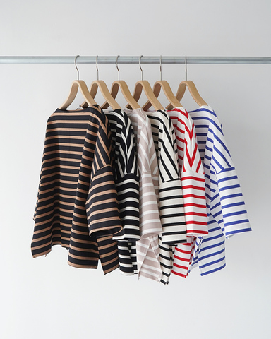 大人カジュアルを楽しむ女性にぴったりの、こだわり抜かれたワイドシルエットのボーダーTシャツ。