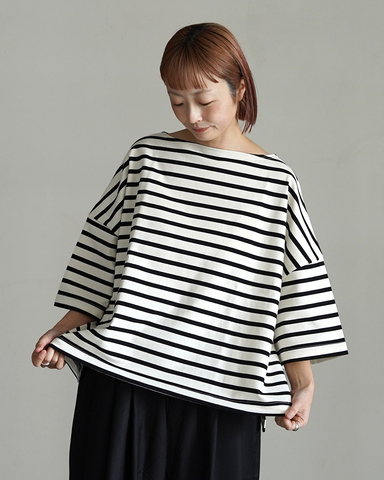 大人カジュアルを楽しむ女性にぴったりの、こだわり抜かれたワイドシルエットのボーダーTシャツ。