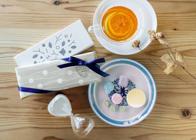 日和制作所のお干菓子は全て手彫りの菓子木型と、手作業で作られた和三盆糖から作られています。優しい甘さと上品な味わいで、口に含むとさらりと溶けていくのは和三盆糖ならでは。毎日がちょっといい日になるように。どんなシーンにも、どんなお飲み物にも、ころんと寄り添います。