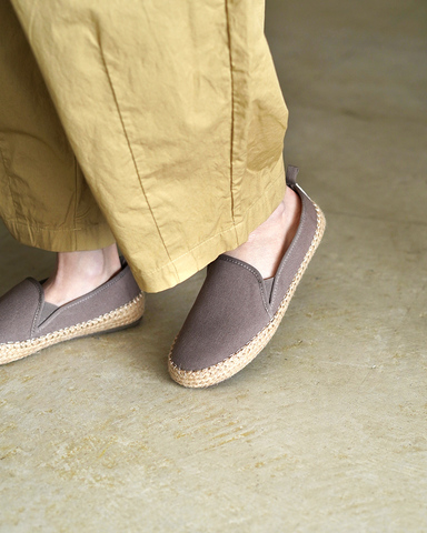 ナチュラルな雰囲気を大切にしながら、オーガニックコットンとジュート素材を組み合わせ、リラックス感のある一足に仕上げました。