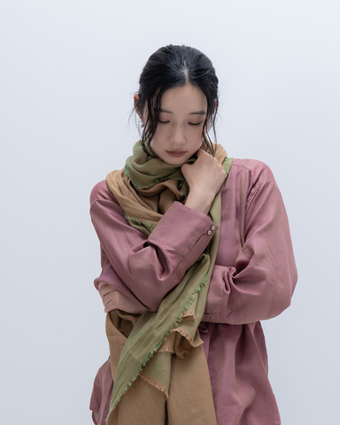 [w-face]と名付たテキスタイルは、ガーゼの用にふわりと空気の層を作る手法で織り上げることでとろけるように柔らかく仕上げます。