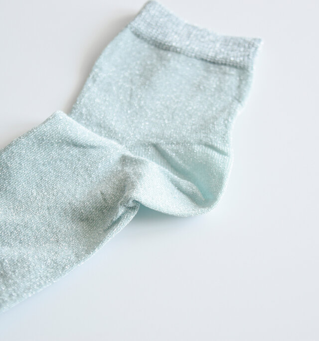 輝くラメがフェミニンさをプラス。サスティナブルなソックス