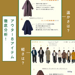 本日ご用意したのは8枚のアウター。 アウターを選ぶときにまずポイントとなるのは、軽さ、温かさだと思います。 今回はそれぞれの特長や魅力を踏まえながら、徹底分析してみました!