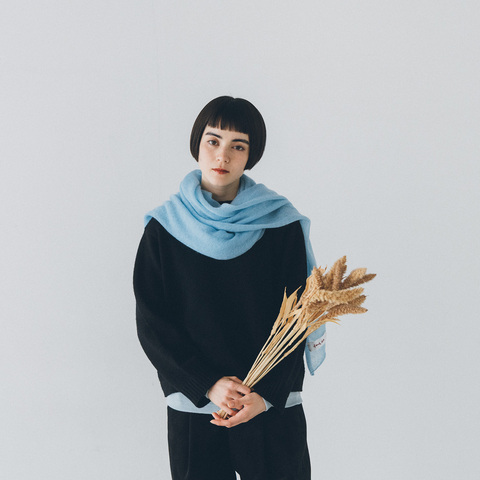 薄手なので巻くとおさまりが良く、柔らかさが可愛らしい雰囲気に。