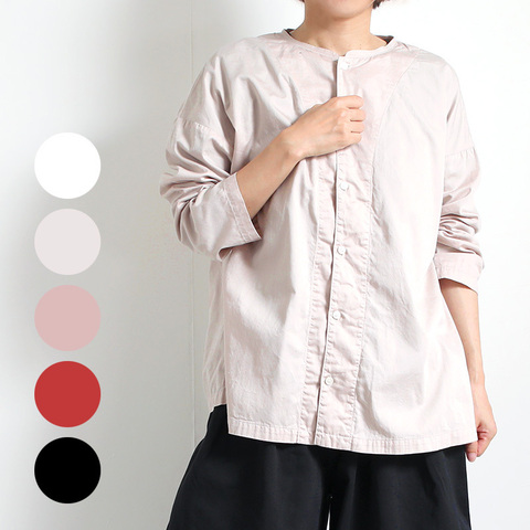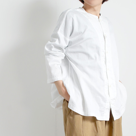 小さな襟が特徴の肩の落ちたゆったりめシルエットのアトリエブラウス。