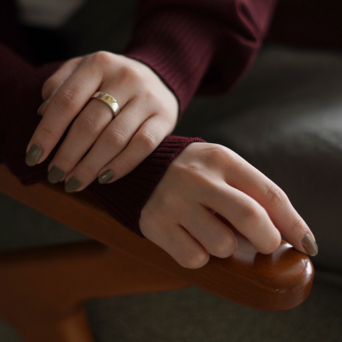 断面がフラットになっているため、他のリングなどと重ね付けしやすいのが特徴。同ブランドのシグネット・ブレイク・リングとの相性もバツグンです。