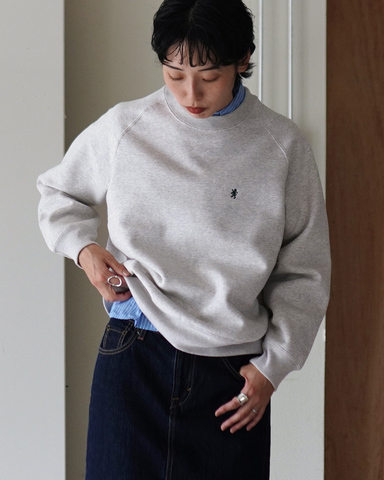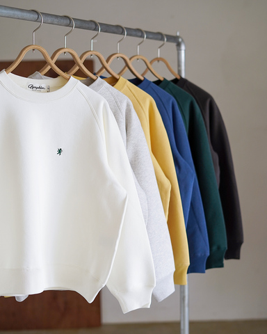 糸番手の組み合わせと繊細な度目調整を行い編み上げたスウェット素材の裏面を、一般的なスウェットよりも起毛回数を増やし深く起毛させることで、一線を画す膨らみと柔らかさ、そして軽さを実現しました。
