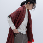 色づき始めた山の木々や日の色によって変化する街の景色、鳥から見た里山、ぼんやりと心の中に残る愛おしい風景をモザイクのようにぼんやりと表現しています。 そんな景色とともに感じる、ウールのマフラーはこれからの肌寒くなる季節にそっと首元に優しさとあたたかさを感じることのできるアイテム。