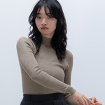 シルクの絹紡糸に起毛加工を施す特殊技術でできた糸「KOHARU」を無縫製のニットマシンで編み立てることで縫い目を排除し、ずっと着ていたくなるようなふわふわと優しい肌ざわりを実現しました。不快な縫い目やチクチク感のない天然素材のリブニットを探されている方におすすめです。