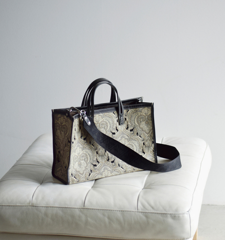 織りによって浮き出した模様が素敵で、プリントでは出せない趣があり、持つだけで存在感を放ちます。