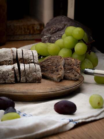 全粒粉100%(全粒+ライ麦全粒粉)の生地に、白ワインにオーガニックのドライフルーツを漬け込んだものをたっぷり混ぜ込み、自家製酵母でゆっくり発酵させ焼き上げました。
