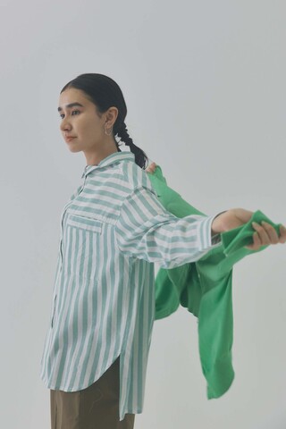 ichi|INDIGO Selvage Stripe Frill Shirt