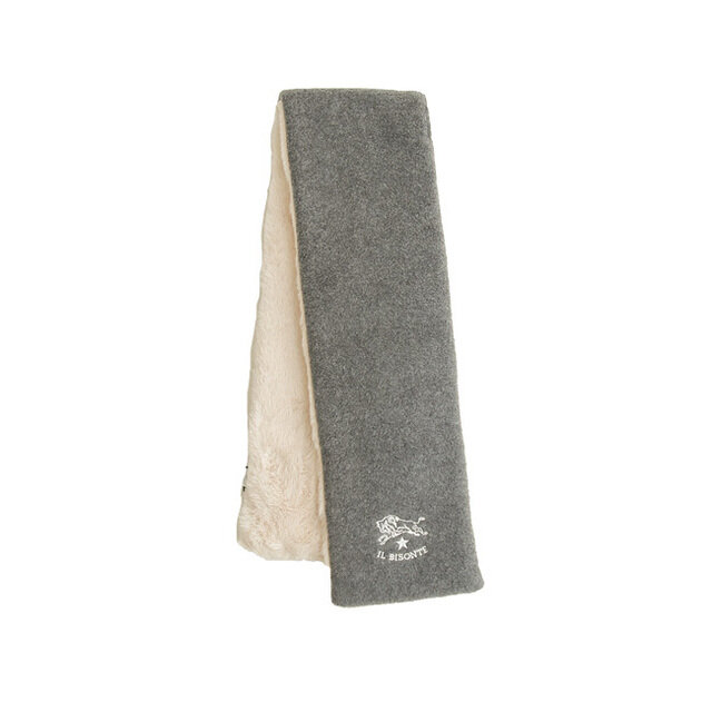 表裏で異素材を切り替えた、やわらかな着け心地の中わた入りマフラー。