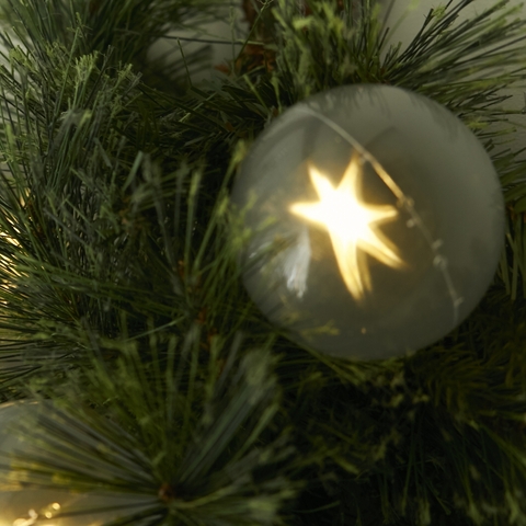 フェイクグリーンのリースに点灯すると星が浮かぶ電球が組み合わさっているので、ナチュラル系の照明をお探しの方にもおすすめです。