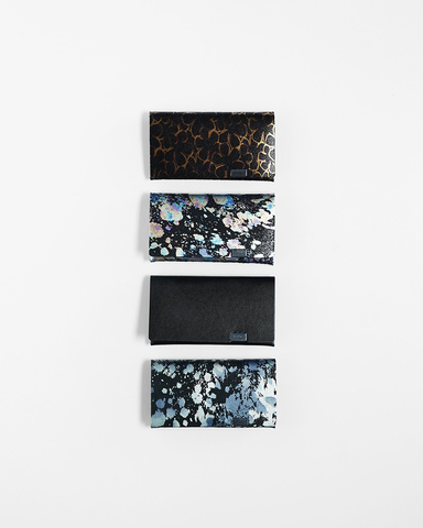 ペイント箔加工が目を惹く、カードケース。こちらのカードケースはカード入れ部分を2箇所設け、一つは自分の名刺、もう一つは頂いた名刺を入れる場所と、分けて使用すると便利に使用できます。