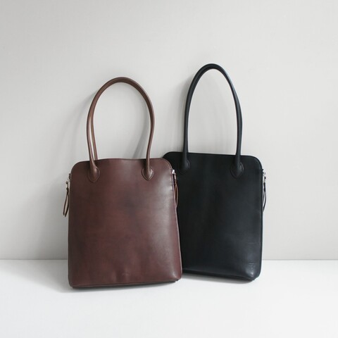 書類やノートPCの収納に便利なサイズ感のトートバッグ。ビジネスバッグというと、重厚感があってガッシリとしたデザインが多いイメージですが、こちらはマチを薄く、すっきりとスマートなフォルムにデザインしました。ハンドルは冬用のアウターの上から背負っても余裕がある長さ。男女問わずおすすめのワークトートです。