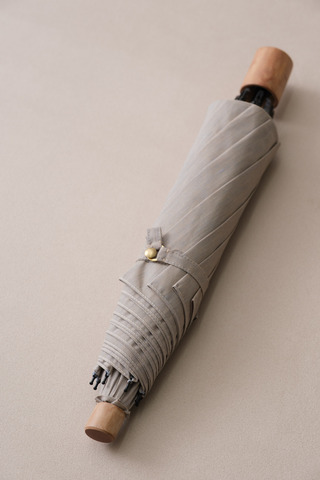 ハンドル・石突き部分には天然木を使用していますので、一点一点表情が変わります。1番小さく畳むと生地の裏側が見えるので、また違う表情が楽しめます。