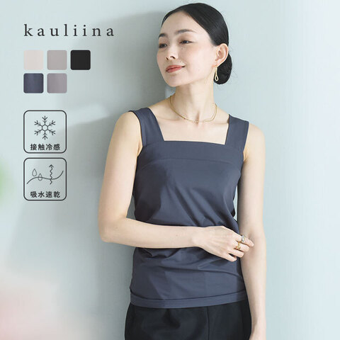 胸元や脇下にピタッと寄り添い、からだや下着のチラ見えを防いでくれる「スクエアタンクトップ」の、夏に嬉しい機能派バージョン。
