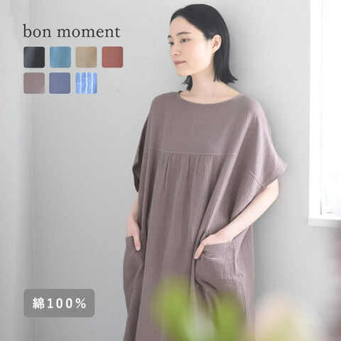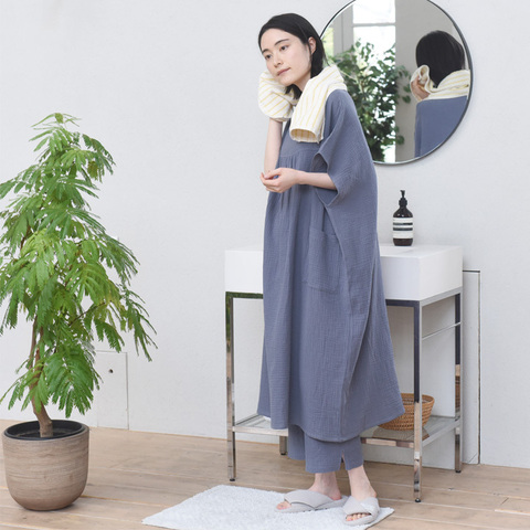 なかなか汗が引かないお風呂上がりの素肌に、サッと着られるガーゼタオルワンピース。パジャマを着る前の、クールダウンにぴったりな1枚です。