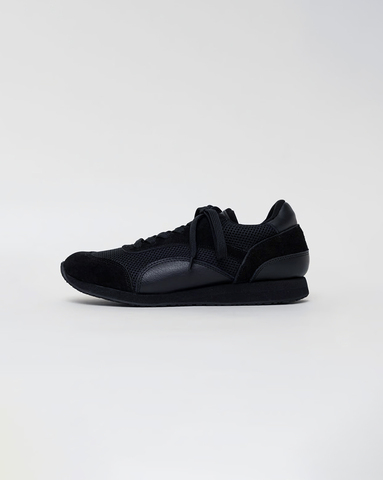 2種の革×メッシュ、ソール、中敷もすべてブラック。