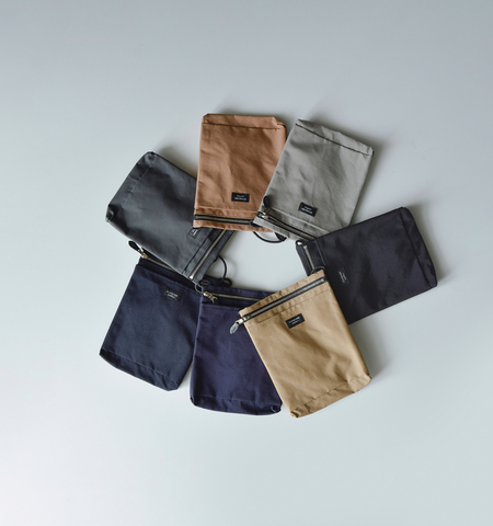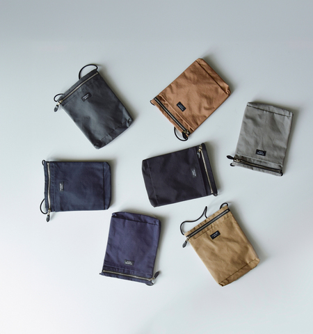 本体にはアウトドアウエアなどにも使われている、綿60%、ナイロン40%の生地を使用しています。軽さと耐久性を兼ね備え、また発色が良いのもこの素材の特徴です。裏側にはアクリルコーティング加工を施しています。