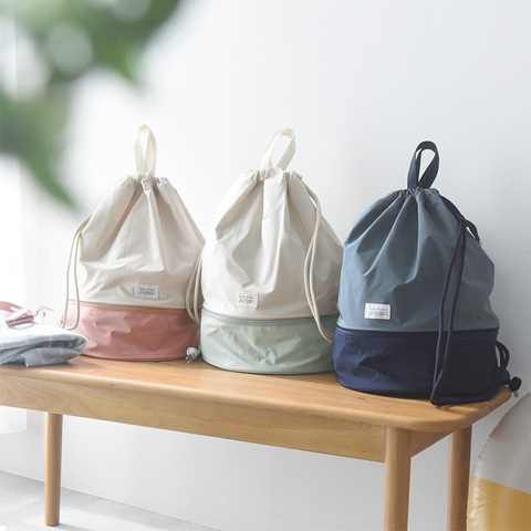 両面撥水加工を施したポリエステル素材なので、濡れたものを入れてもOK。プールや海水浴にはもちろん、シンプルなデザインだから、普段使いもしていただけます。