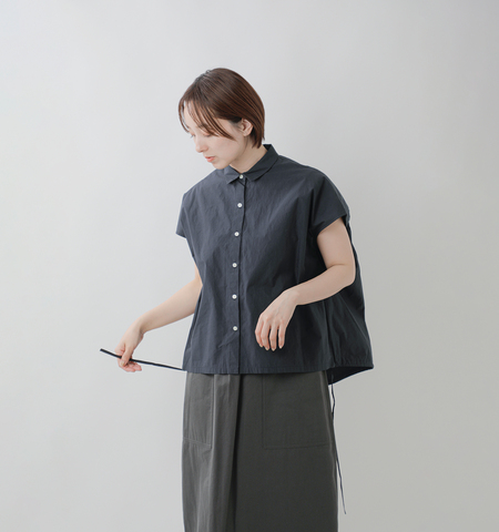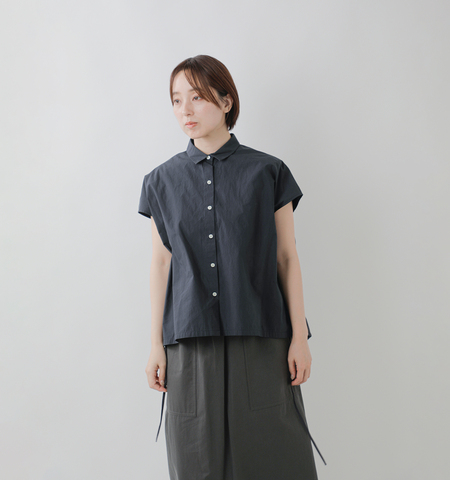 小ぶりな衿でシンプルに仕上げたフロントに対して、バックスタイルはたっぷりとったギャザーがポイントのブラウス。合わせやすい爽やかなカラーバリエーションです。