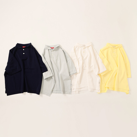 ギザコットンを使用した、カノコ編み素材のポロシャツ。