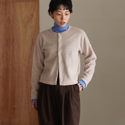秋冬のコーディネートに活躍するフリースクルーネックカーディガン。オーシバルらしい上質で柔らかなフリース生地が、日常の装いに心地よさと上品さを添えます。