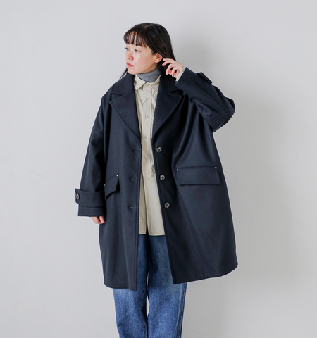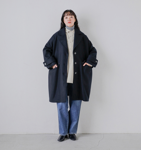 チェスターコートはかっちりとしたイメージですが、こちらはゆったりとしたコクーンシルエットに仕立て、大人っぽく可愛らしい雰囲気に仕上げました。きちんと感が必要なフォーマルな場はもちろん、デニムやチノに合わせてカジュアルな普段使いもお楽しみいただけます。