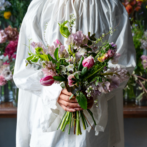 スイトピーやスイセン、ヒヤシンス、ユーカリなど春の代表的な香りを集めたこの季節だけの花束です。