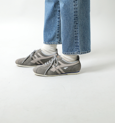 アッパーはスエード革、サイドのラインはスムース革とスエードを採用したモデルです。サイドパネルの補強パーツが象徴的。