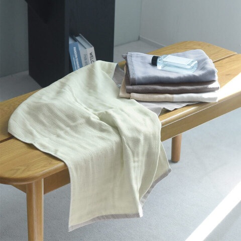 パイル地のタオルよりも、ボリュームが少ないガーゼ素材だから、畳んだときにもペタンとコンパクト。収納も場所を取らず、すっきり片づけられます。