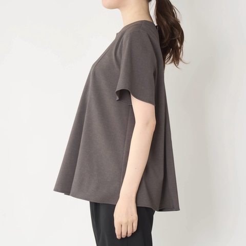バスト下からドレープが広がるようにパターンを設計することで、広がりすぎて着ぶくれするのを防いでいます。それにより、体型が気になる方でもすっきりと着られる、着痩せ効果のあるシルエットが実現。また、1枚で華やかな雰囲気になるのでジャケットいらずです。ゆとりのある半袖は二の腕をカバーし、腕をほっそりと見せてくれるのも嬉しいポイント。