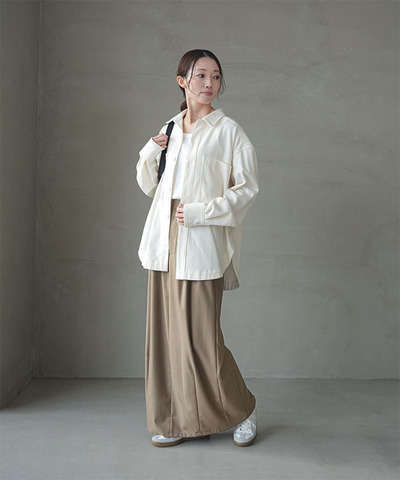 全体に程よいゆとりと、30cm程のスリット入りで動きやすさも十分です。