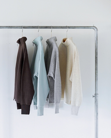 ハイネックのデザインが首元をすっきりと見せ、ジップの開閉で印象を自在に変化させることができます。裾を切りっぱなしに仕上げたラフなディテールが、抜け感のある大人のカジュアルスタイルを演出。