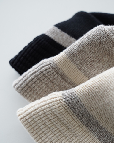 シンプルなデザインながら、バケツをひっくり返したような台形のシルエットが特徴的。一般的なゆるいニット系ハットと異なり、編目を密にすることでキレイな形をキープするようデザインされています。