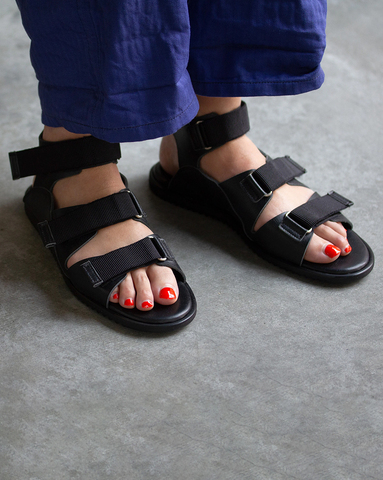 撥水加工を施した牛革製のサンダルは、足をしっかりホールドし、歩きやすさは格別です。